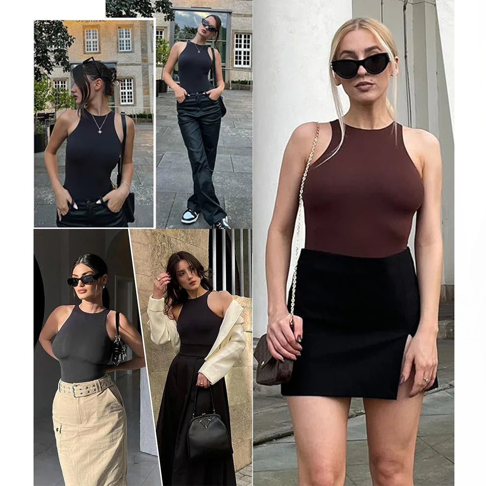 Este body sin mangas está diseñado para adaptarse perfectamente a tu cuerpo, confeccionado con un tejido suave como la seda que realza tus curvas con elegancia. Es una pieza esencial para tu guardarropa, ofreciendo una sensación ligera y ajustada que lo hace ideal tanto para usar solo como en capas.